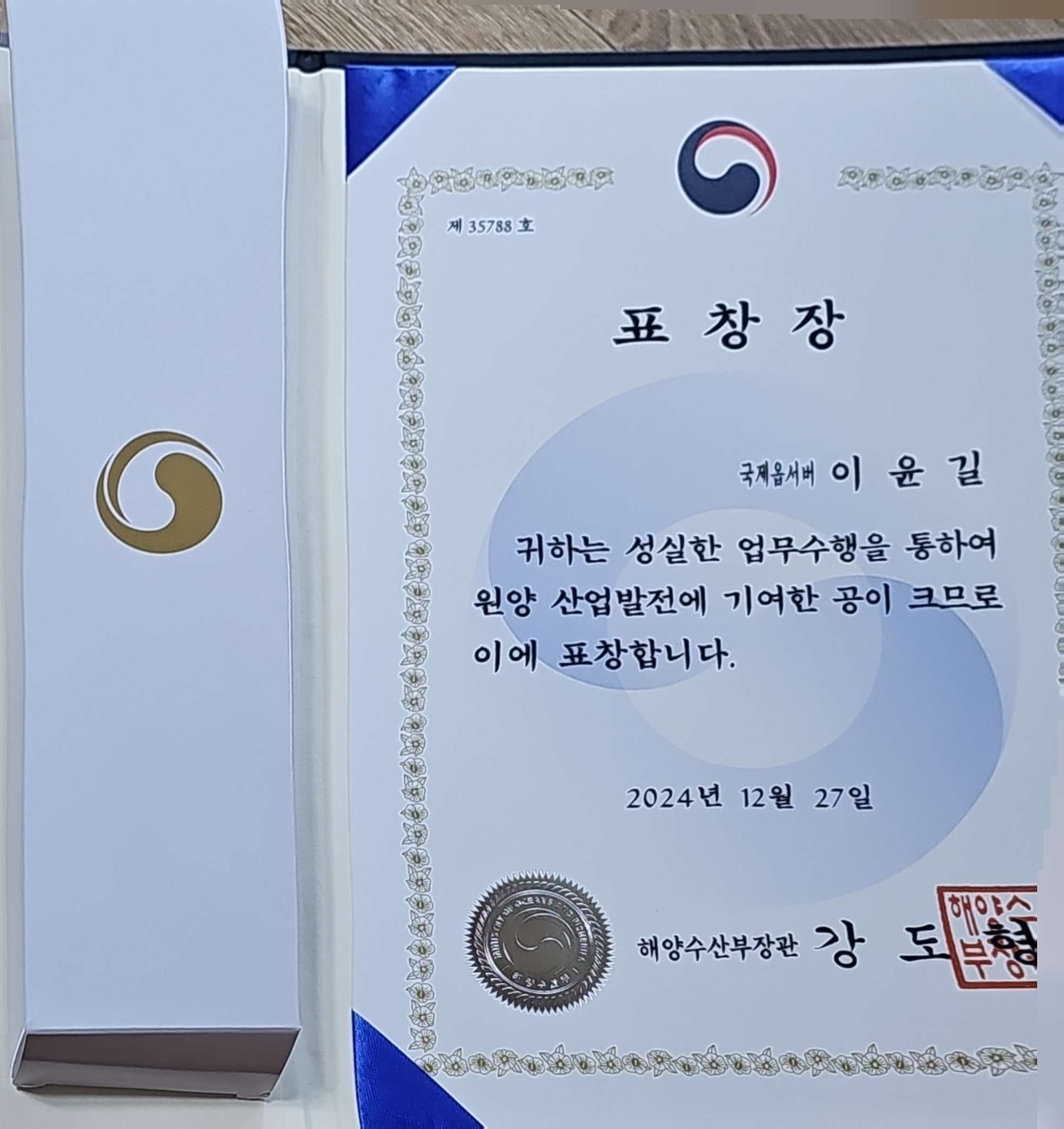 전직 선장시절에도 해양수산부장관상은 2번 받았다. 한번은 표창이고 한번은 상이다. 지금 내 나이에 상이 무슨 필요가 있겠나 라는 자괴심에 젊은 친구들에게 양보하려 고민했던 건 사실이다.