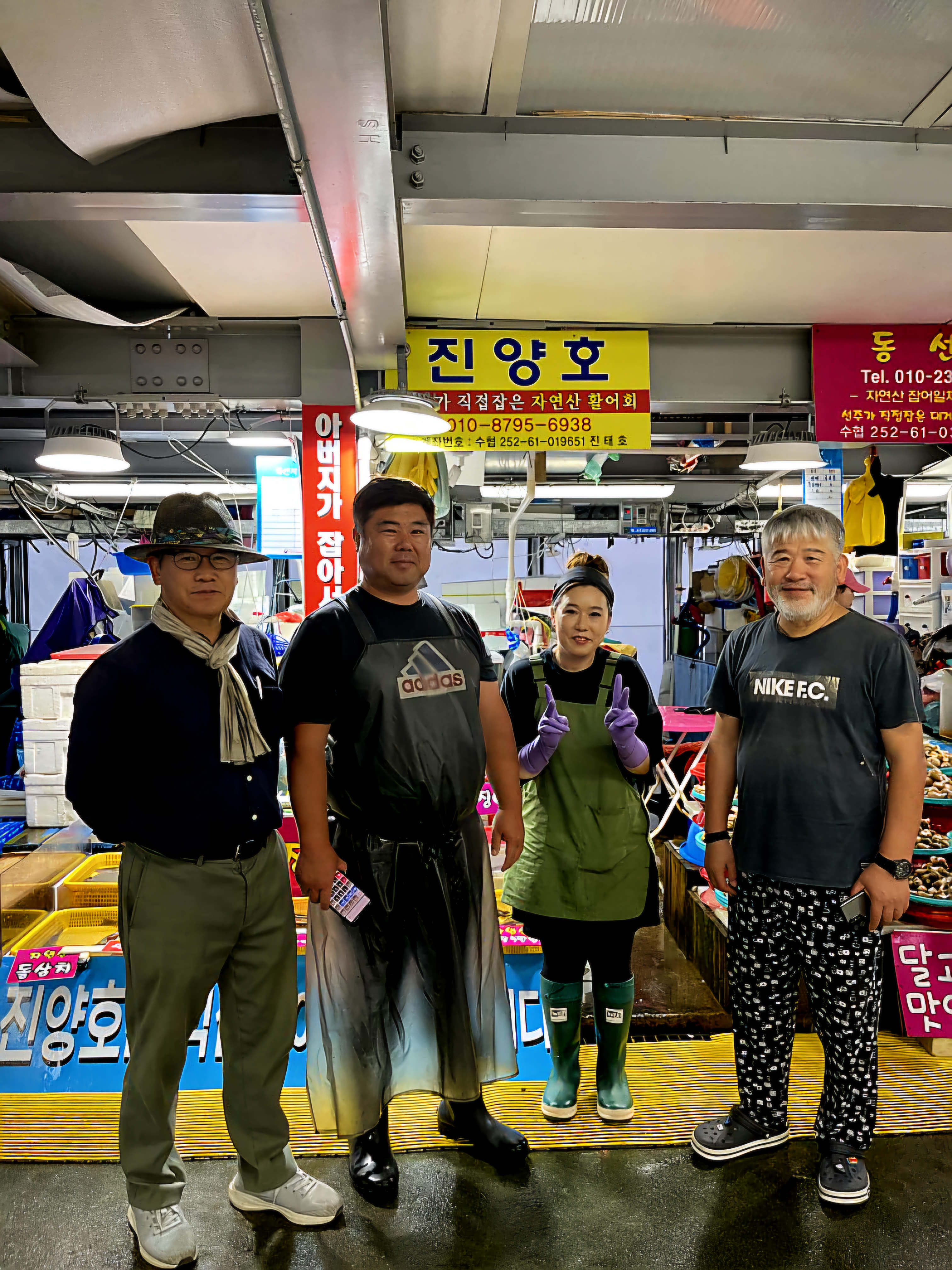 주문진 홍보대사는 아니지만 주문진어민수산시장을 입 아프게 홍보했고 부산에 계신 조상제샘이 주문진까지 오셔서 어디냐고 하시기에 소개했다. "아버지가 잡아서 아들이 파는 집 " 진양호. 횟거리용 생선을 주로 판매하는데 주문진 근해에서 잡은 자연산 수산물, 그래서 상품이 참복이 될 수도 있고 오징어가 될 수 있고 고등어도 될 수 있다. 즉 그날그날 어획 따라 등장하는 상품이 다르다는 의미다. 진양호에서 활어를 적당량 구입하고 소개하는 초장집으로 이동해서 회 뜨는 수고비와 초장값을 따로 치르는 구조다. 맛있다, 연신하는 조상제샘은 풍류식객이다. 웬만해선 맛있다 말하지 않는다. 이곳은 주문진어민수산시장의 진양호다